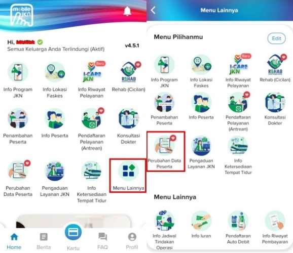 Selanjuntnya pilih di menu Mobile JKN. Jika tidak ada di menu utama, cari menu ubah data di bagian “Menu Lainnya”. Selanjutnya pilih menu “Perubahan Data Peserta”.